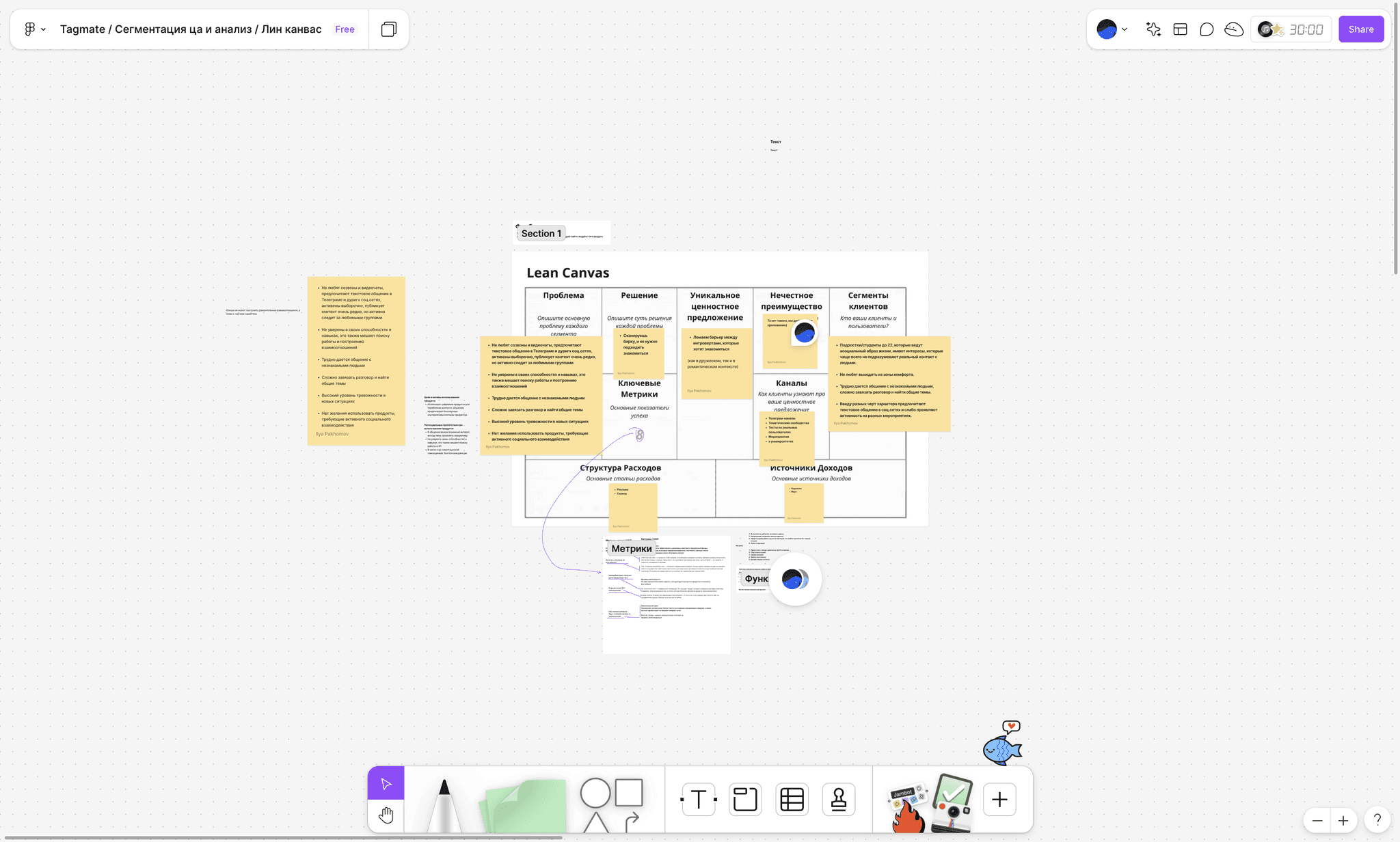 Lean Canvas. На момент разработки у нас не было бизнес-модели, я поднял этот вопрос на ретро и на основе результатов UX-исследования вместе с продактом заполнил Lean Canvas. После общего брейншторма