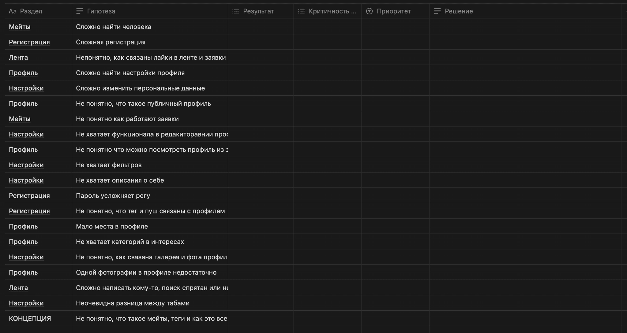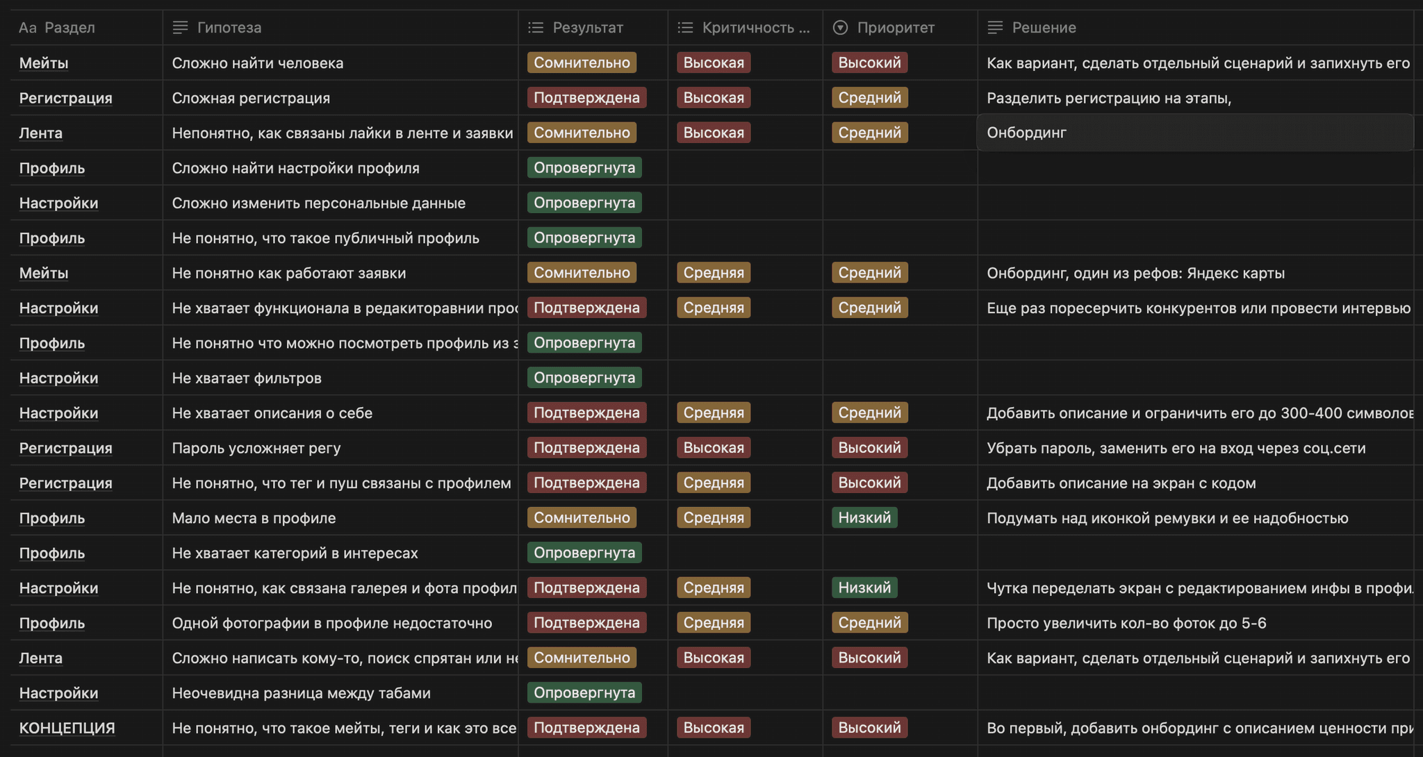 Гипотезы. Собрав данные, вместе с командой вывел первые гипотезы, которые проверил в ходе глубинных интервью с потенциальной целевой аудиторией.